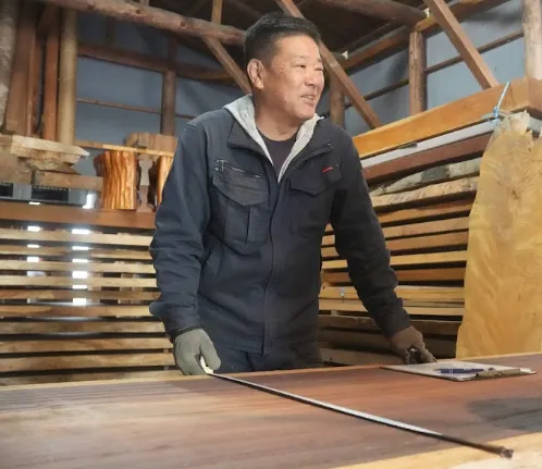 長い年月、多種多様な木と向き合い続ける中で、木が持つ一つ一つの表情や温もり、その奥深さに魅了されてきました。40年という時間は、お客様にとって最良の一枚を見極める「目」と、ご要望を形にする「技術」を培うための、かけがえのない時間であったと自負しております。